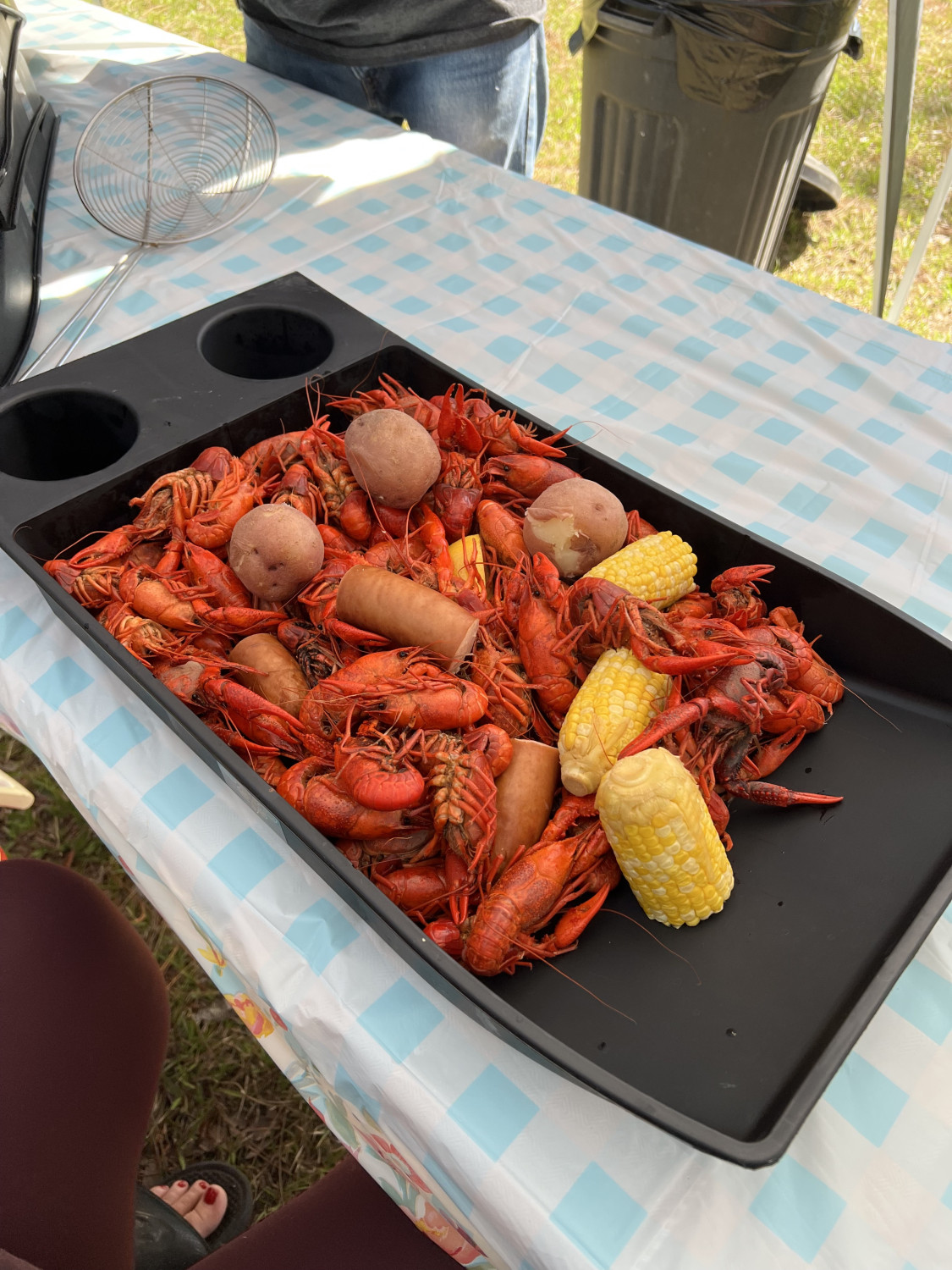 We will have crawfish along with the usual corn, potatoes and smoked sausage as well as a few other surprises.