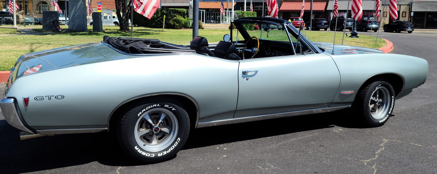 1968 Pontiac GTO Convertible. Factory Color - Springmist Green (code P) - very rare color on a 1968 GTO. Born First Week (07A) in July 1968 in Freemont California. Body number is 00580, which is strange for a late year build.